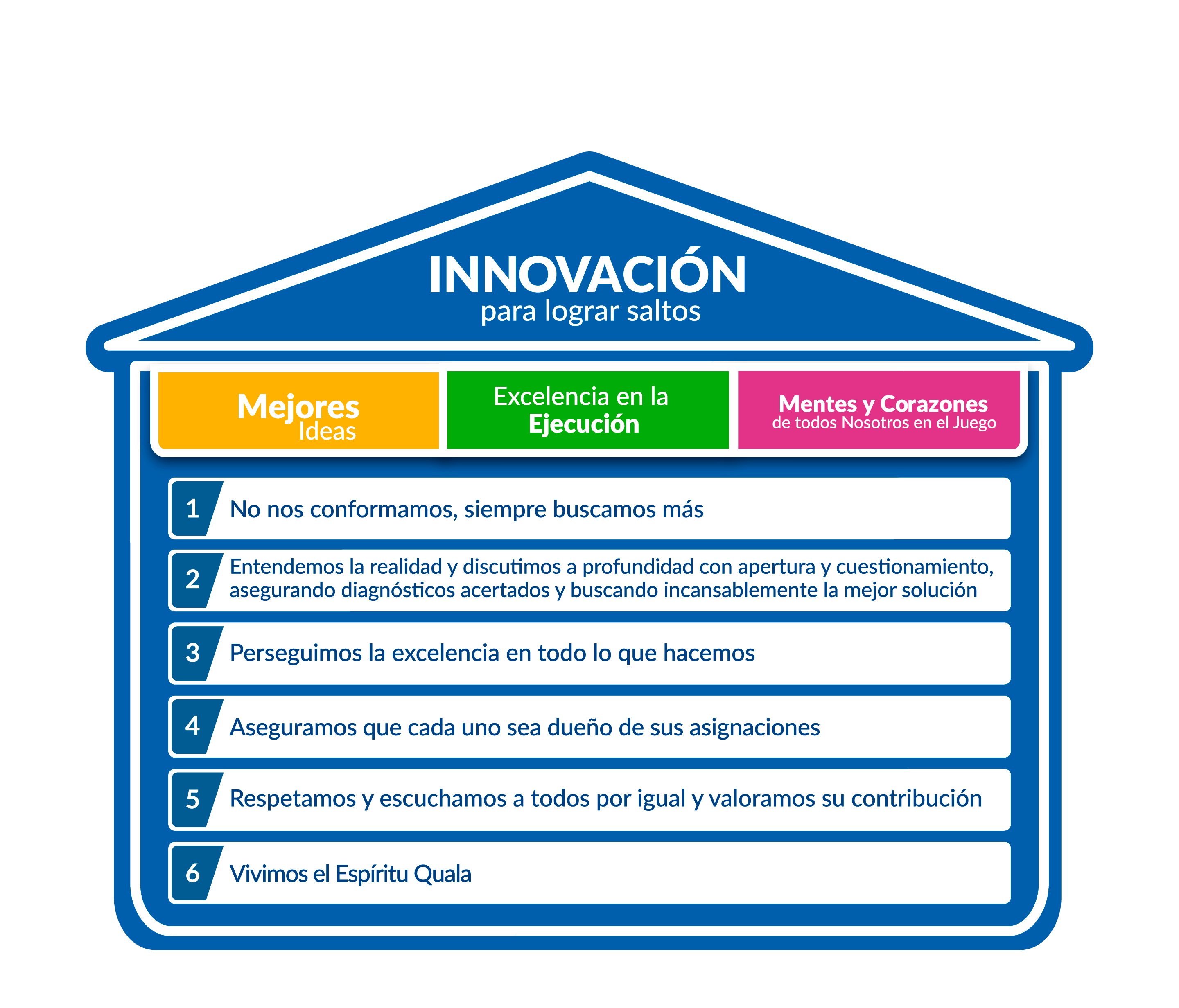 La Cultura Quala es nuestro elemento diferencial que nos ha permitido ser exitosos al definirnos la filosofía, valores y creencias que han hecho que nuestros éxitos perduren, constituyéndose en el marco de actuación en nuestra organización.